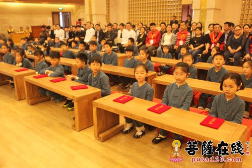 全国政协委员、中国佛教协会副会长、上海觉群文教基金会理事长、上海玉佛禅寺方丈觉醒大和尚;上海汇银(集团)有限公司代表余峰;国学堂老师代表、百余位学生及家长一同参加了结业典礼。